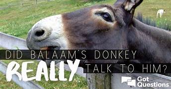 But knowing Balaam’s heart, the Lord’s anger burned against Balaam for what He knew was Balaam’s rebelliousness, and He sent an angel with a drawn sword to bar his way. Although Balaam couldn’t see the angel, his donkey could, and she tried to discontinue the journey by going off the path, crushing Balaam’s foot against the wall and lying down on the path. Angered by her behavior, Balaam used his staff to beat the donkey three times. Then in Numbers 22:28, we learn that “the LORD opened the donkey’s mouth, and she said to Balaam, ‘What have I done to you to make you beat me these three times?’” Then Balaam and the donkey proceeded to have a conversation about the situation, with Balaam angrily berating the donkey, after which the Lord opened Balaam’s eyes to see the angel and understand why his journey was stopped.